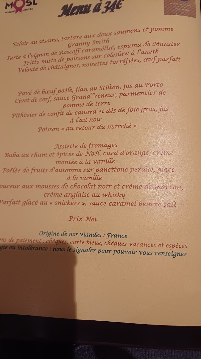 The menu also showcases regional specialties such as the Tarte À l'oignon de Roscoff Caramélisé Espuma de Munster, a caramelized onion tart with a touch of creamy Munster espuma that makes for a perfect balance of sweetness and tang. Suprême de Volaille Et Polenta is another standout, with perfectly cooked chicken breast paired with a smooth polenta base, creating a comforting and flavorful dish.